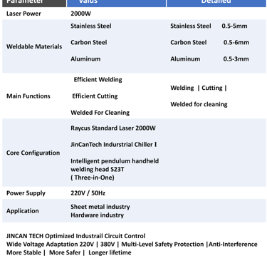 Equipped with original core components, this 2000W high-power handheld laser welder can weld more types of metals and a wider range of plate thicknesses, with more stable performance at the same power.